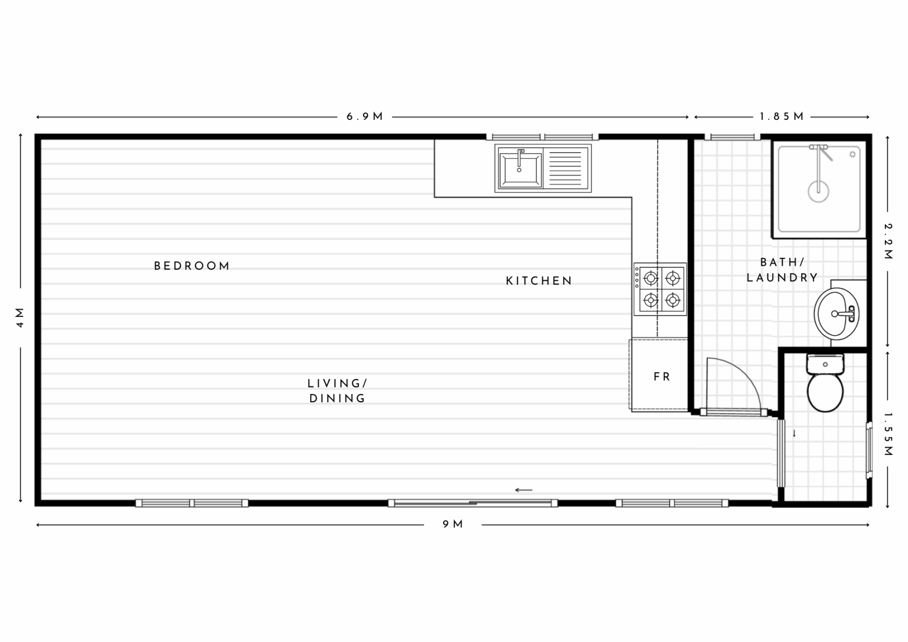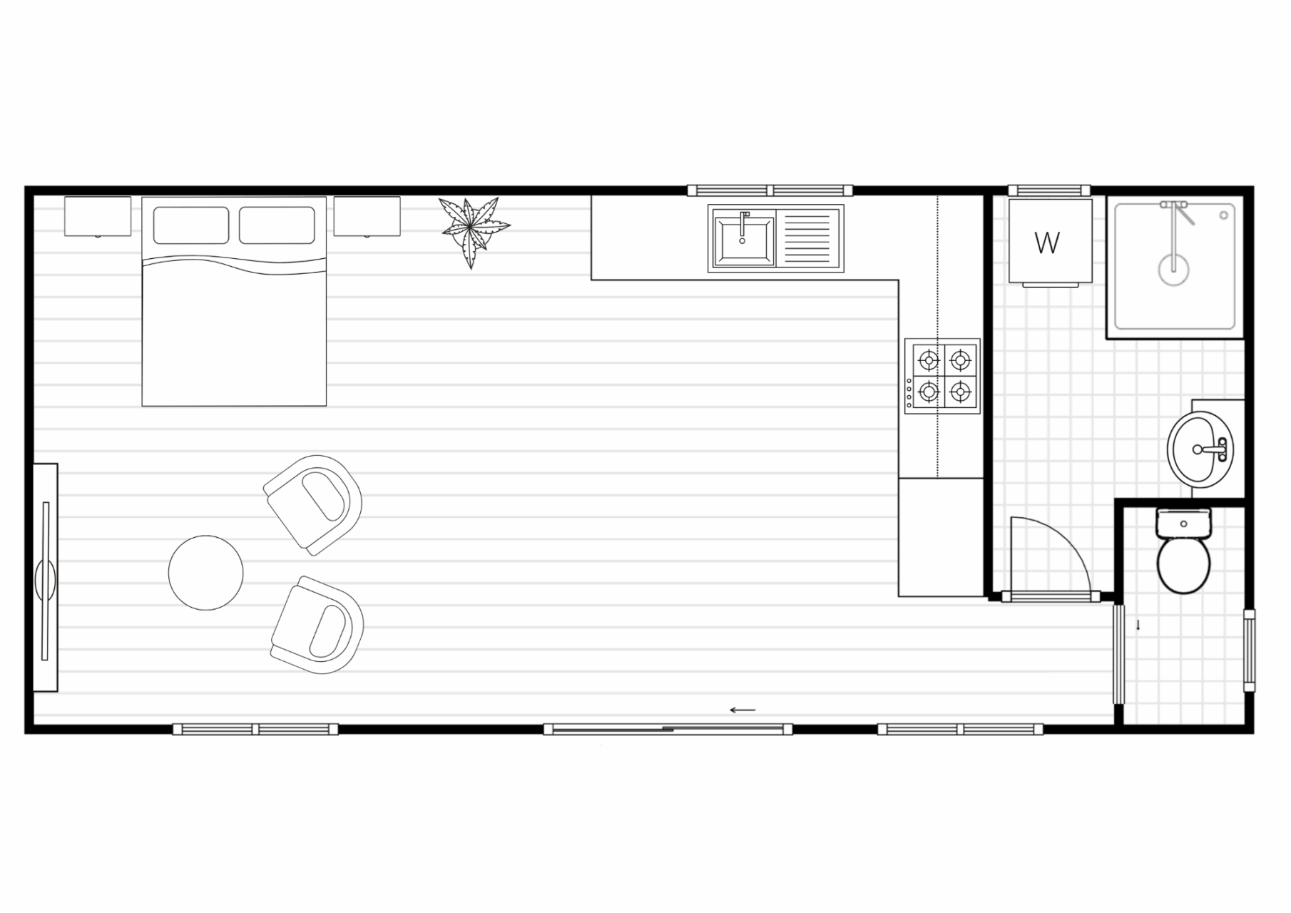 This clever studio-style design packs 36 sqm of functional living space. Alongside your standard inclusions—like overhead kitchen cabinetry—you’ll enjoy a combined bathroom/laundry plus a separate toilet with its own private entry.
