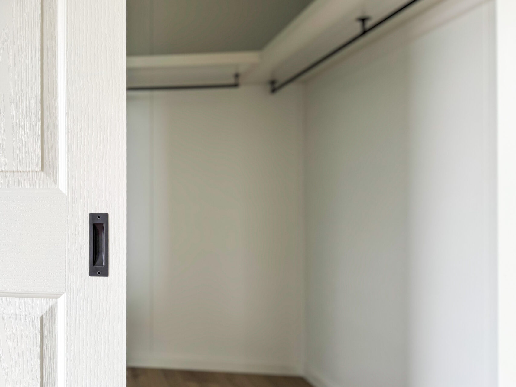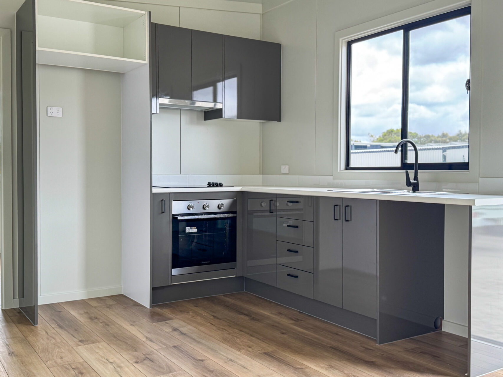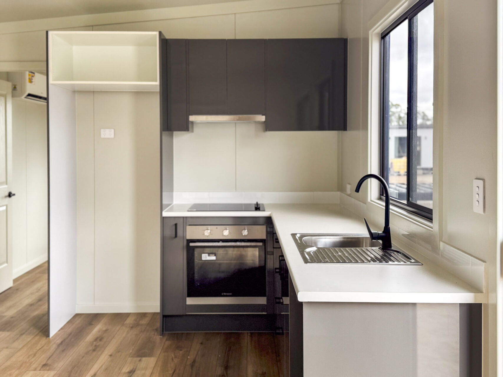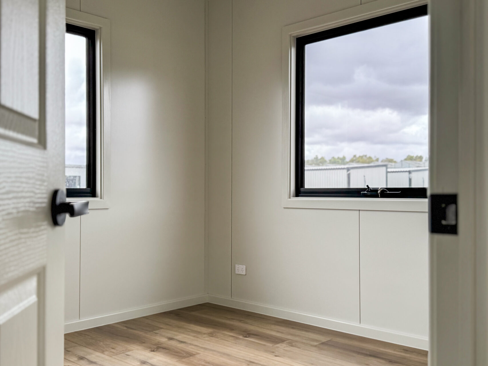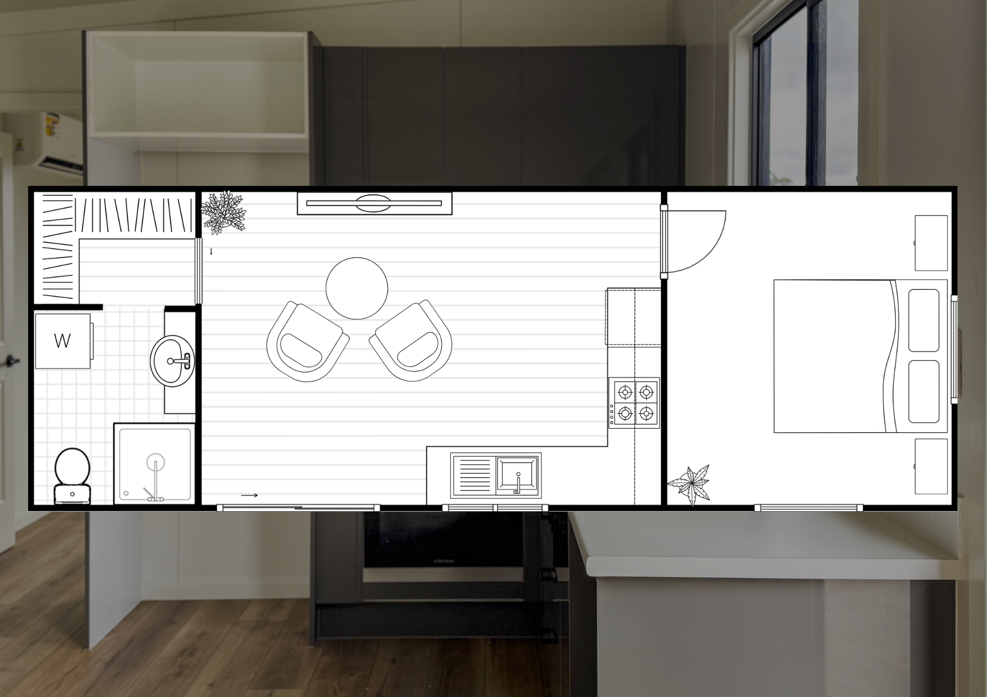 This custom-designed one-bedroom granny flat offers clever zoning and modern comfort in a compact 35sqm footprint. The bedroom is positioned at one end of the home for added privacy, separated by a central kitchen and living area that maximises space. On the opposite end, a walk-through robe provides added storage and flows directly into a private ensuite-style bathroom. With a layout designed to feel open yet defined, this compact granny flat is ideal for guests, extended family, or independent living.