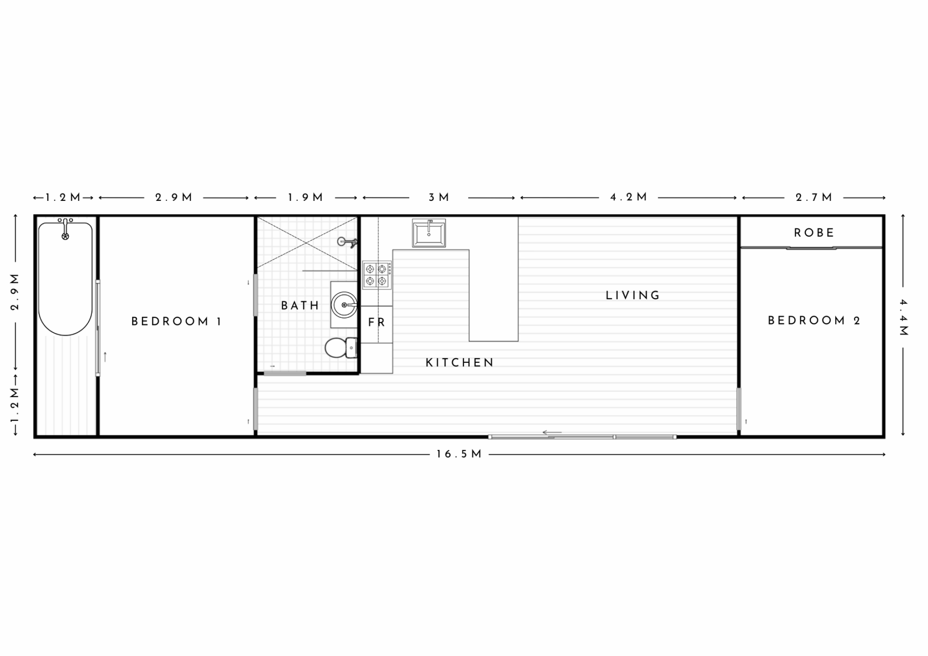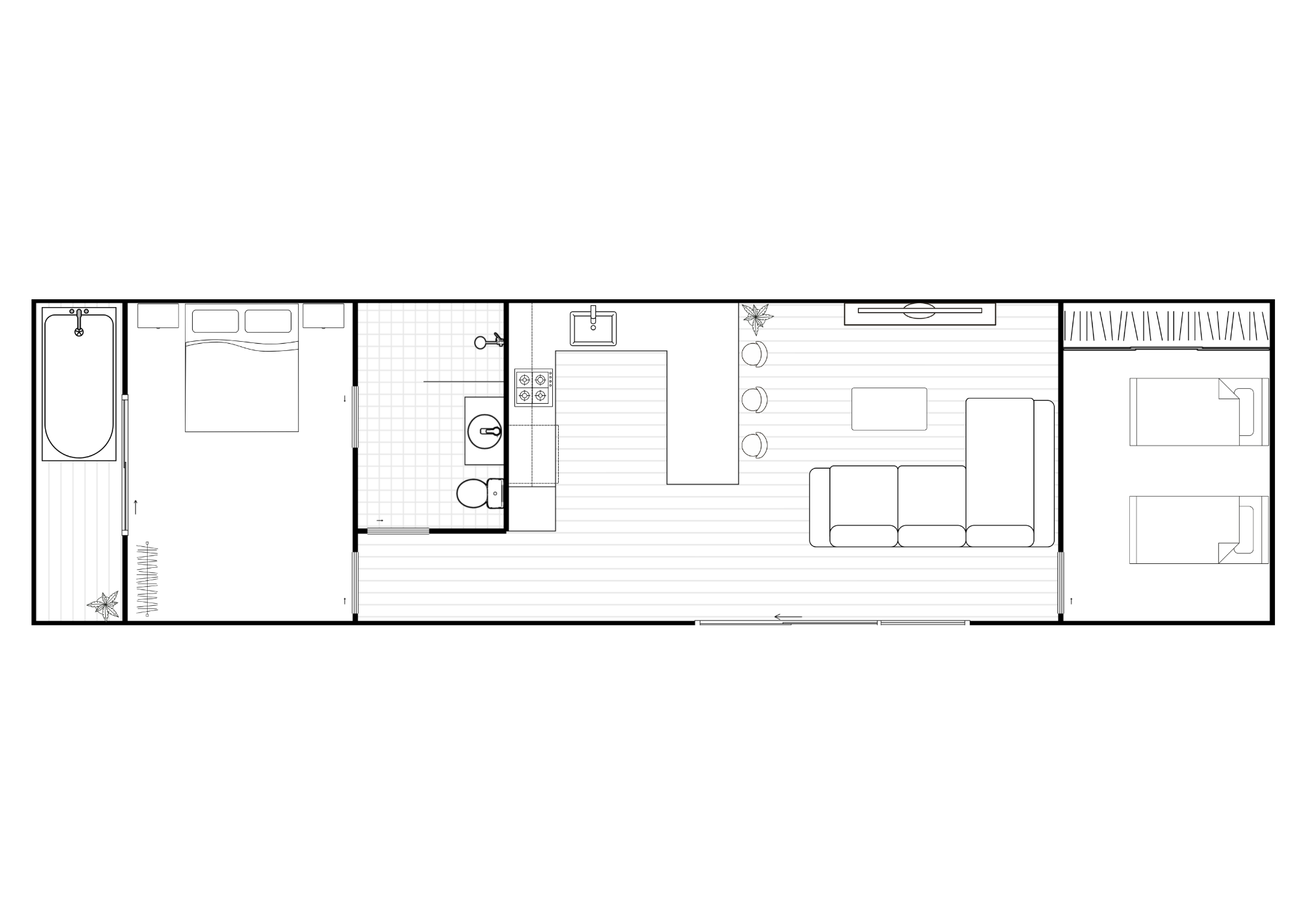 This thoughtfully designed 64sqm, two-bedroom, one-bathroom home is the ideal Airbnb escape. With dual entry points and seamless indoor-outdoor flow, it offers convenience and style in equal measure. The open-plan kitchen and living area opens to the outdoors through stacker doors, while the bathroom features dual internal access plus a private entry from the verandah. Step out from the master bedroom onto the deck to find a freestanding outdoor bathtub—perfect for unwinding under the stars. Finished with custom tiling, statement light fittings, and designer tapware throughout, this compact retreat has been built full of character and to impress.