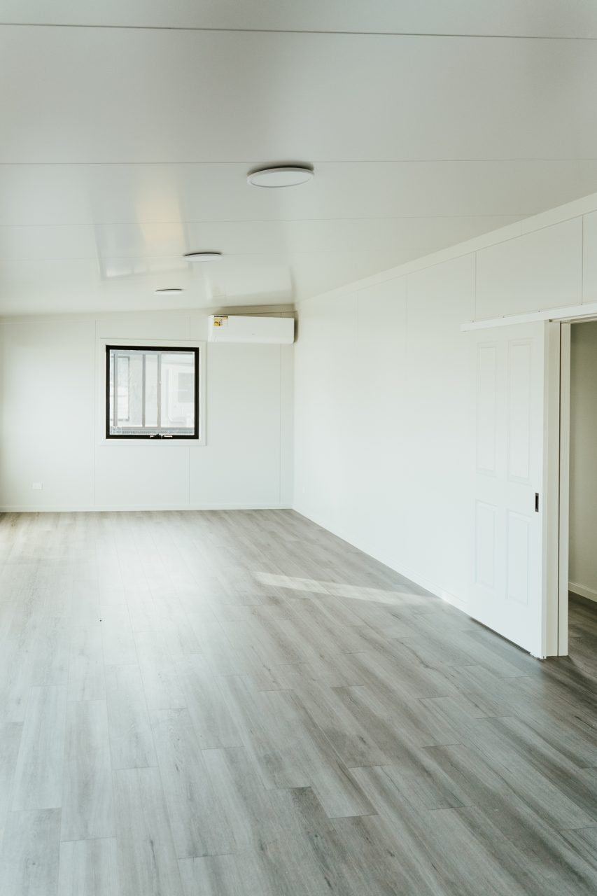 The Vista features two spacious bedrooms with built in robes and an open-plan living and dining area that connects to the kitchen with a breakfast bar. The layout includes a combined bathroom and laundry, providing a total living area of 88 square meters.